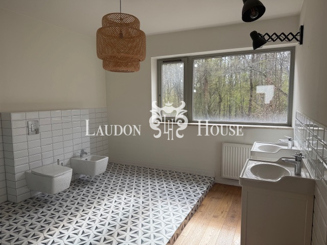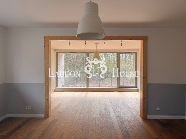 Urocza willa w Konstancinie-Jeziornej w bliskiej odległości od Chojnowskiego Parku Krajobrazowego, położona na terenie zamkniętego osiedla. Modernistyczna bryła, obłożona piaskowcem oraz okładziną drewnianą nadaje budynkowi nowoczesny i jednocześnie ciepły charakter.. Willa bezpośrednio sąsiaduje z lasem, co zapewnia kojący widok z okien oraz możliwość wyjścia własną furtką z ogrodu prosto do lasu. Na terenie osiedla znajduje się malownicze, naturalne jeziorko z parkiem i pomostem.