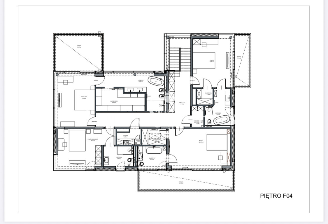 Piętro to wygodne 4 sypialnie, każda z łazienką i garderobą, trzy z nich posiadają wyjście na balkon lub loggię. Całość staranie zaprojektowana tak, aby zapewnić maksymalny komfort przyszłym domownikom.