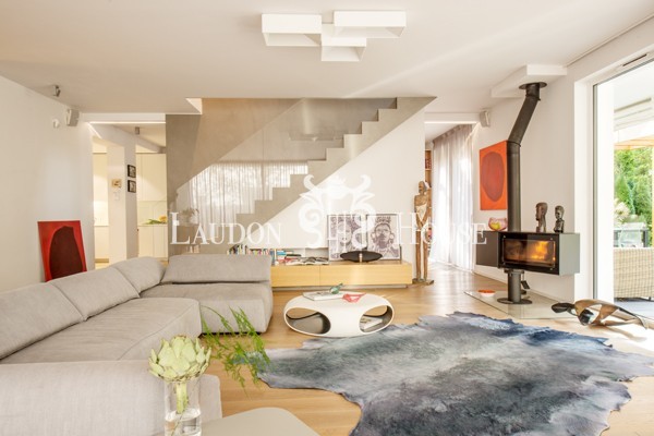 Urocza willa w Konstancinie-Jeziornej w bliskiej odległości od Chojnowskiego Parku Krajobrazowego, położona na terenie zamkniętego osiedla. Modernistyczna bryła, obłożona piaskowcem oraz okładziną drewnianą nadaje budynkowi nowoczesny i jednocześnie ciepły charakter. Wnętrze zaprojektowane jest w stylu modern classic, łączy w sobie styl, tradycję oraz najnowsze rozwiązania techniczne. Chodnik przy budynku wykonany jest z płyt granitowych. Willa bezpośrednio sąsiaduje z lasem, co zapewnia kojący widok z okien oraz możliwość wyjścia własną furtką z ogrodu prosto do lasu. Na terenie osiedla znajduje się malownicze, naturalne jeziorko z parkiem i pomostem oraz plac zabaw dla dzieci. Ogród ze starodrzewiem zaprojektowany przez profesjonalną firmę ogrodniczą, utrzymany jest w stylu parkowym, posiada automatyczne podlewanie oraz systemem oświetlenia drzew i roślin. Na terenie osiedla rosną m.in. ponad 60 letnie modrzewie. W ogrodzie znajduje się duży (ok. 40m2) taras wraz z wykonaną według indywidualnego projektu pergolą.