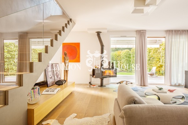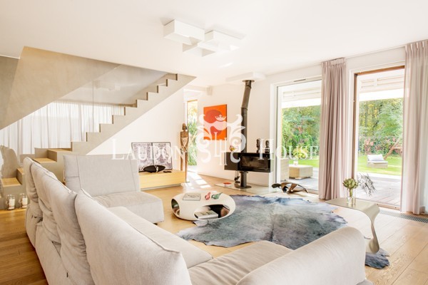 Urocza willa w Konstancinie-Jeziornej w bliskiej odległości od Chojnowskiego Parku Krajobrazowego, położona na terenie zamkniętego osiedla. Modernistyczna bryła, obłożona piaskowcem oraz okładziną drewnianą nadaje budynkowi nowoczesny i jednocześnie ciepły charakter. Wnętrze zaprojektowane jest w stylu modern classic, łączy w sobie styl, tradycję oraz najnowsze rozwiązania techniczne. Chodnik przy budynku wykonany jest z płyt granitowych. Willa bezpośrednio sąsiaduje z lasem, co zapewnia kojący widok z okien oraz możliwość wyjścia własną furtką z ogrodu prosto do lasu. Na terenie osiedla znajduje się malownicze, naturalne jeziorko z parkiem i pomostem oraz plac zabaw dla dzieci. Ogród ze starodrzewiem zaprojektowany przez profesjonalną firmę ogrodniczą, utrzymany jest w stylu parkowym, posiada automatyczne podlewanie oraz systemem oświetlenia drzew i roślin. Na terenie osiedla rosną m.in. ponad 60 letnie modrzewie. W ogrodzie znajduje się duży (ok. 40m2) taras wraz z wykonaną według indywidualnego projektu pergolą.